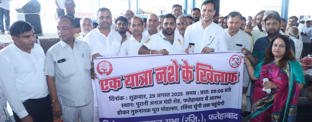 फतेहाबाद में नशा तस्करों के खिलाफ आवाज बुलंद करते हुए "एक यात्रा नशे के खिलाफ" का आयोजन किया गया। इस यात्रा में समस्त सामाजिक संस्थाओं, युवाओं, महिलाओं और जागरूक नागरिकों ने बढ़-चढ़कर हिस्सा लिया। यह यात्रा नशे और तस्करी के खिलाफ जनजागरूकता फैलाने का सशक्त प्रयास थी। इस यात्रा के माध्यम से जनता को नशे के दुष्परिणामों और उससे जुड़े अपराधों के प्रति जागरूक किया गया।